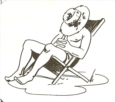 Tegning af mand i liggestol. Det er ikke et blankpoleret produkt med lige linjer da alt på figurerne er fremstillet i. Prisen er kroner 199. Metalfigur rejsebureaumedarbejder rejseleder mand i liggestol.